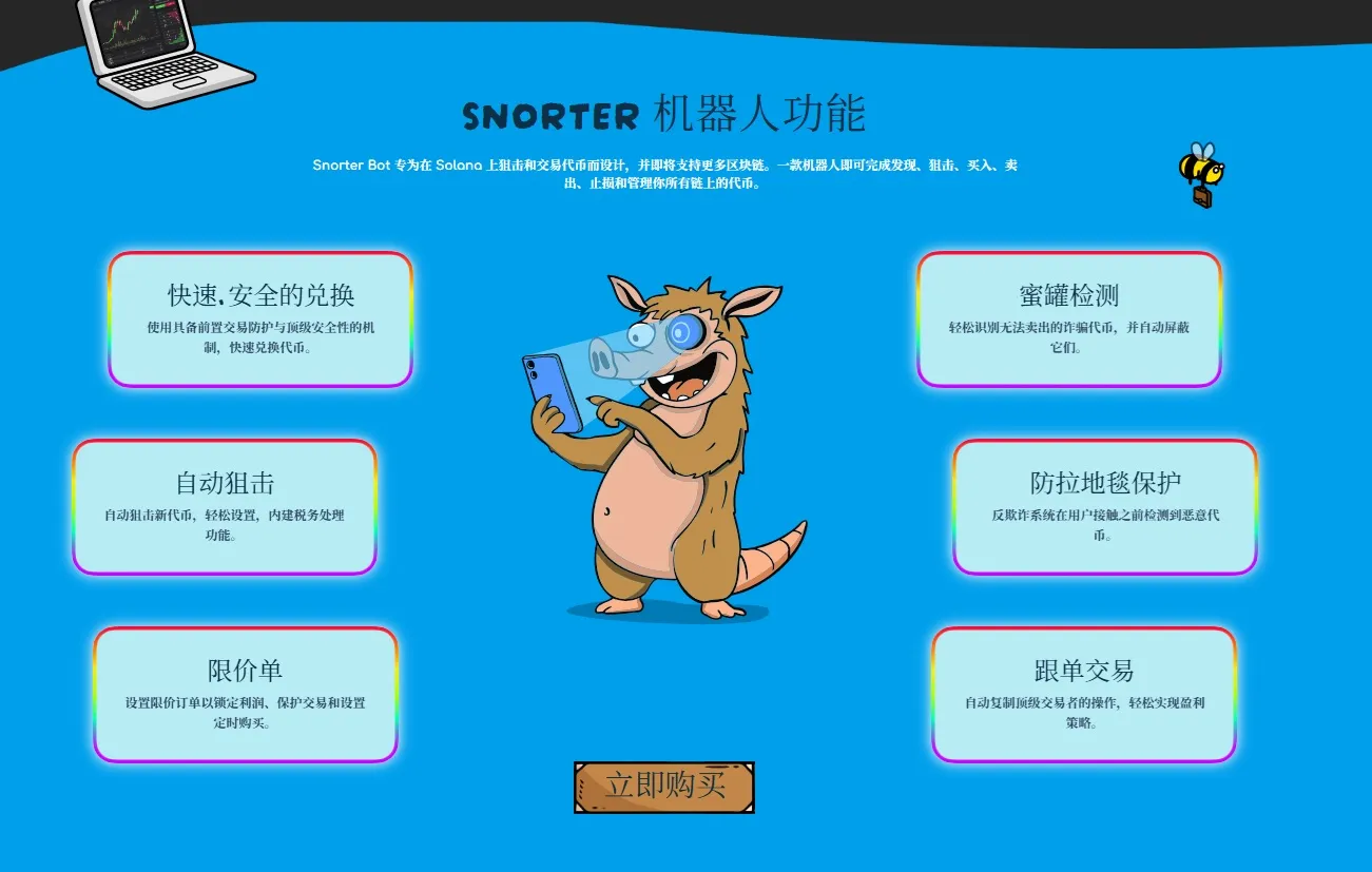 這款基於 Telegram 的交易機器人,具備亞秒級交易執行、自動狙擊開盤新幣,以及實時代幣篩選功能。使用 Snorter,意味著你能更快執行、更早進場,並避開那些吸血詐騙幣,讓你的迷因幣交易更接近“超人級”表現。