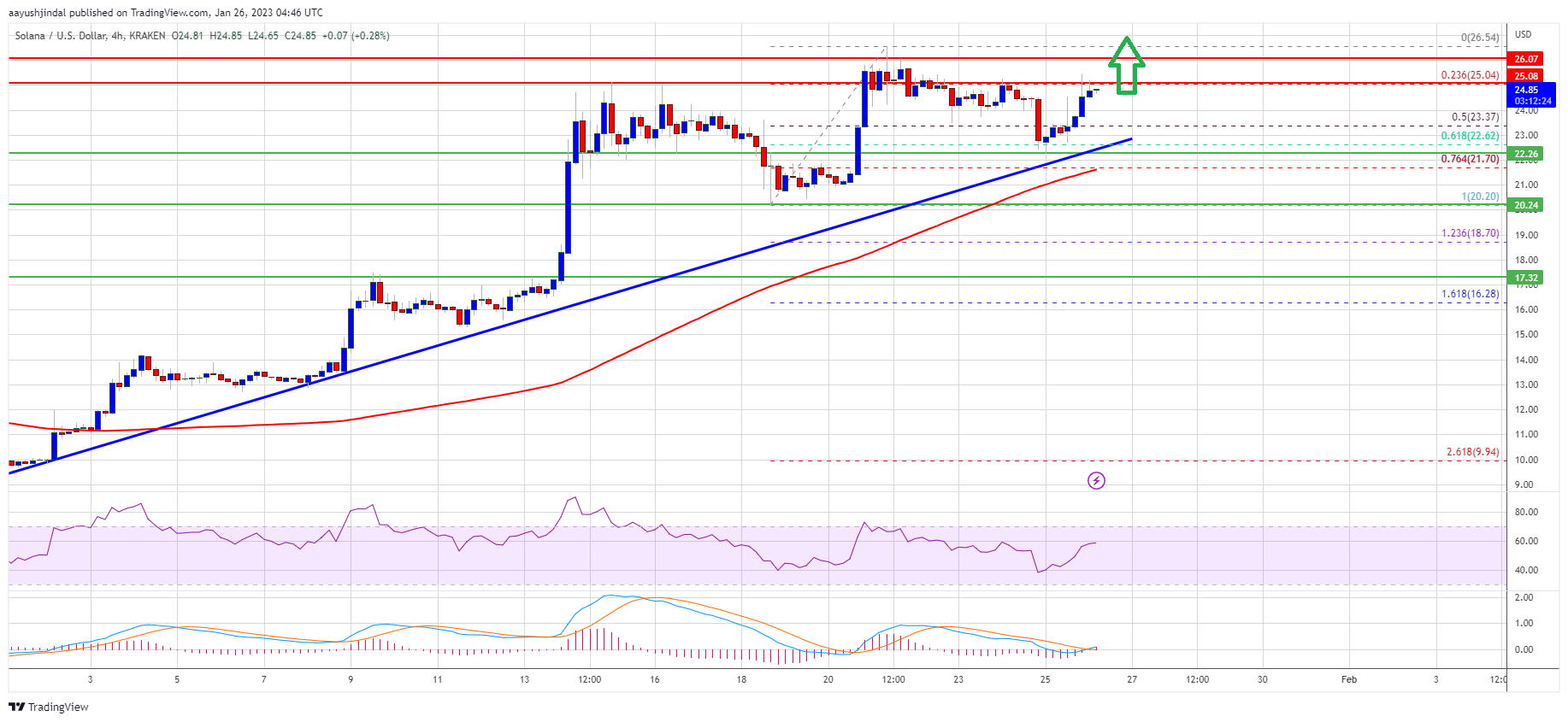 If SOL fails to clear the $26.50 resistance, it could start a downside correction. An initial support on the downside is near the $24 level.