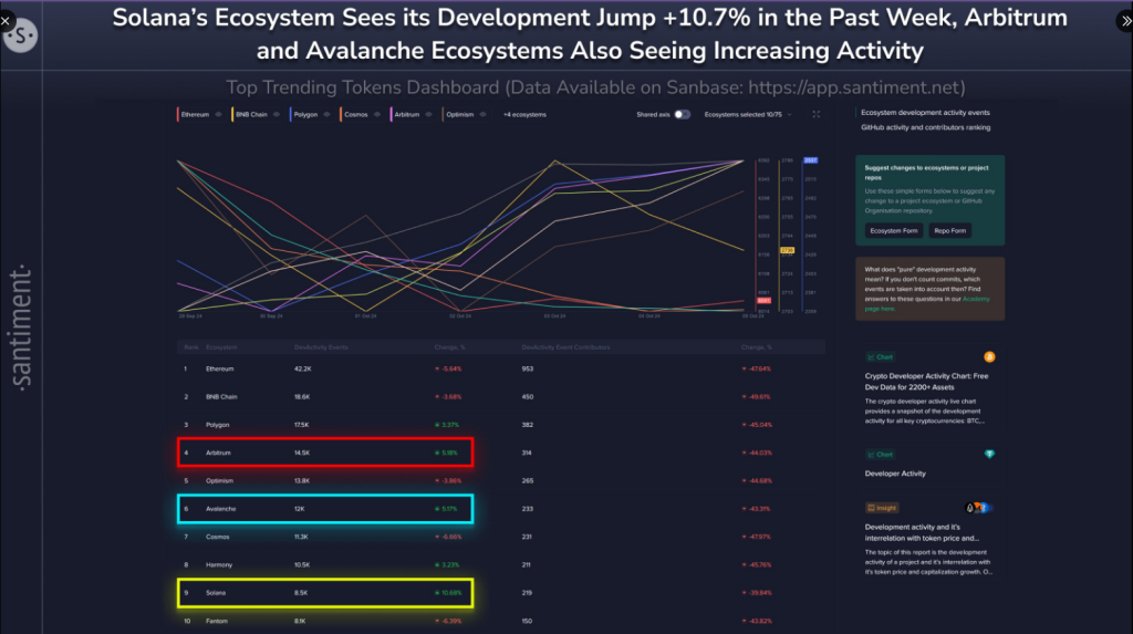 Although both Arbitrum and Avalanche showcased some positive growth, as well—both 5.2% growth—Solana’s is more significant, which would easily place it ahead of its peers in terms of developers’ involvement and any further growth of the platform anytime soon. Solana’s growing network activity spells that this is now the preferred destination for new blockchain ideas and decentralized applications programs (dApps).