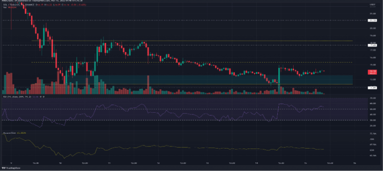 After dipping all the way down to $12.07, SOL mounted a recovery of its own, going up by 2% over the last 24 hours to trade at $14.21 at the time of this writing according to tracking from Coingecko.
