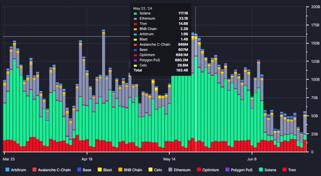 A startling discovery has sent Solana into complete disarray: it appears that the daily stablecoin volume may have been greatly overstated. According to reports, there was an incredible decline in just one day, going from an astounding $75-100 billion to a meagre $7 billion.