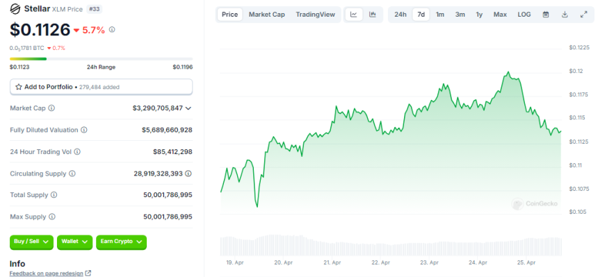 XLM seven-day price action. Source: Coingecko