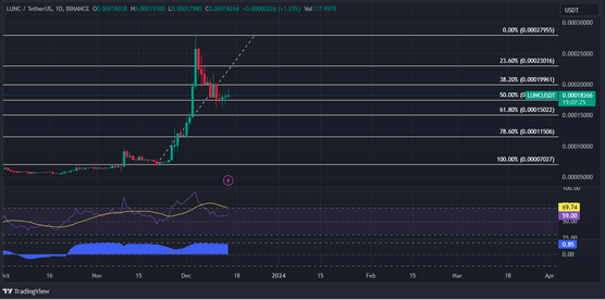 LUNCUSD currently trading at $0.0000177 on the daily chart: TradingView.com