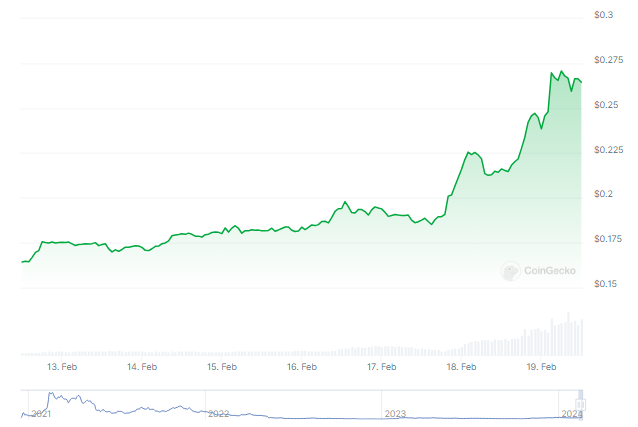 GRT has been up for five days in a row, reaching its highest level since May 2022. At its lowest point in 2023, it increased by over 163%. The demand for its network has surged in the last few months, causing the coin to rise in value.