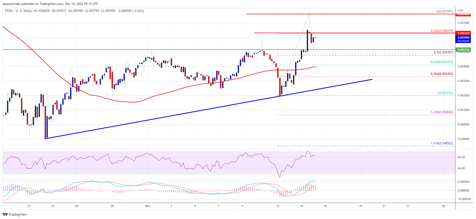 4-hours RSI (Relative Strength Index) – The RSI for TRX/USD is currently above the 50 level.