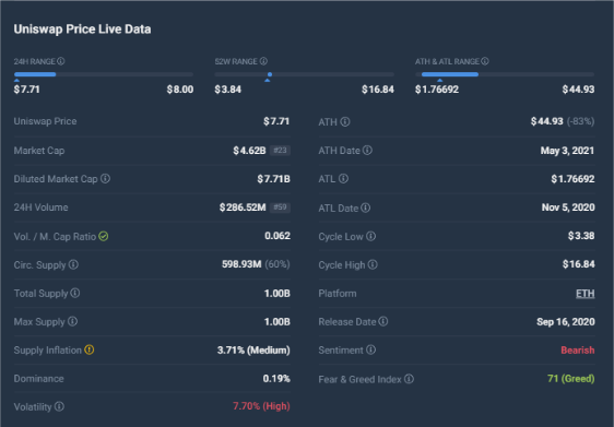 Uniswap, like the other altcoins in the market, saw value cuts in the past 24 hours; worse for the likes of UNI that are having a bad week. The latest market data shows that the token is down nearly 9% since last week, bad news for anyone interested in putting capital in Uniswap.