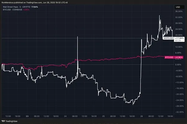 在整個市場一片血海的時候, Wall Street Pepe(WEPE)的爆拉走勢格外亮眼。