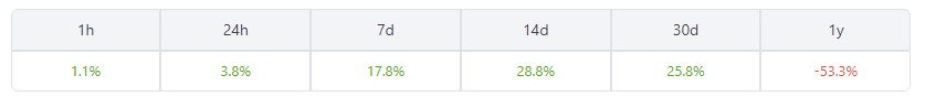 According to CoinGecko, the token has experienced substantial gains in all timeframes, with the highest increase seen in the bi-weekly timeframe at nearly 29%.