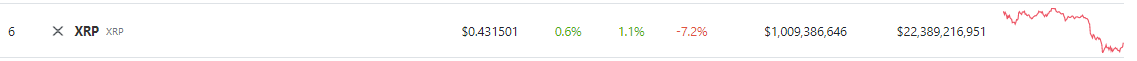 XRP Price Retreats To $0.432