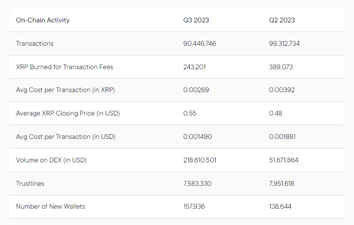 XRP On-Chain Activity. Source: Q3 2023 XRP Markets Report