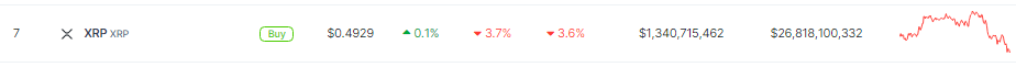 XRPUSD currently trading at $0.49335 on the daily chart: TradingView.com