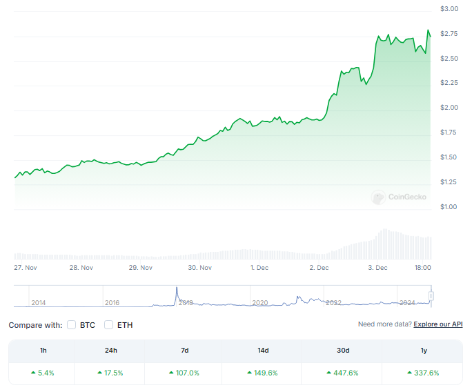 XRP is arguably the hottest crypto right now, and its gains outperform those of Bitcoin and Ethereum. Today, XRP is trading at around $2.73, consolidating its price above $2.50. Last month, its price was hovering near the $0.60 level just before the elections, reflecting a growth of over 400% in just one month.