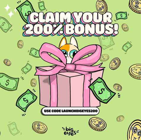 With their current presale surpassing the $21-million milestone, Big Eyes Coin has already made history and is on its way to rewrite more. Their presale is in its tenth stage, and they are currently offering an additional 200% on all purchases. However, time is of the essence, as this promo code ends on February 3. Use the code LAUNCHBIGEYES200 to get your Big Eyes Coins today and be a part of the cat-chiest meme coin!