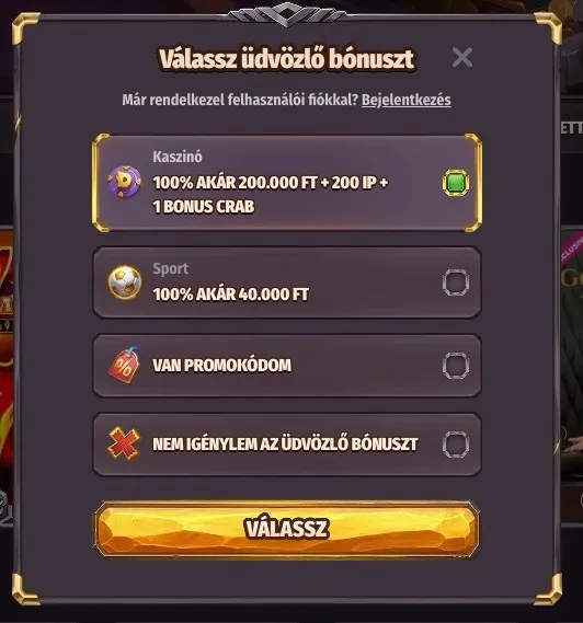 Először is létre kell hoznod egy fiókot. Menj a kaszinó oldalára, és kattints a regisztráció gombra. Egy e-mail címet és egy erős jelszót kell csak megadnod.