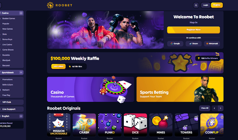 - Sports and Esports Betting: For players interested in sports, Roobet provides a comprehensive sportsbook with betting options on major sports and esports events.